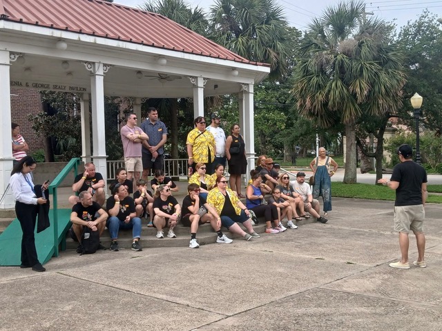 Meet your guide at 123 Rosenberg St, in front of the Galveston Railroad Museum (Shearn Moody Plaza).